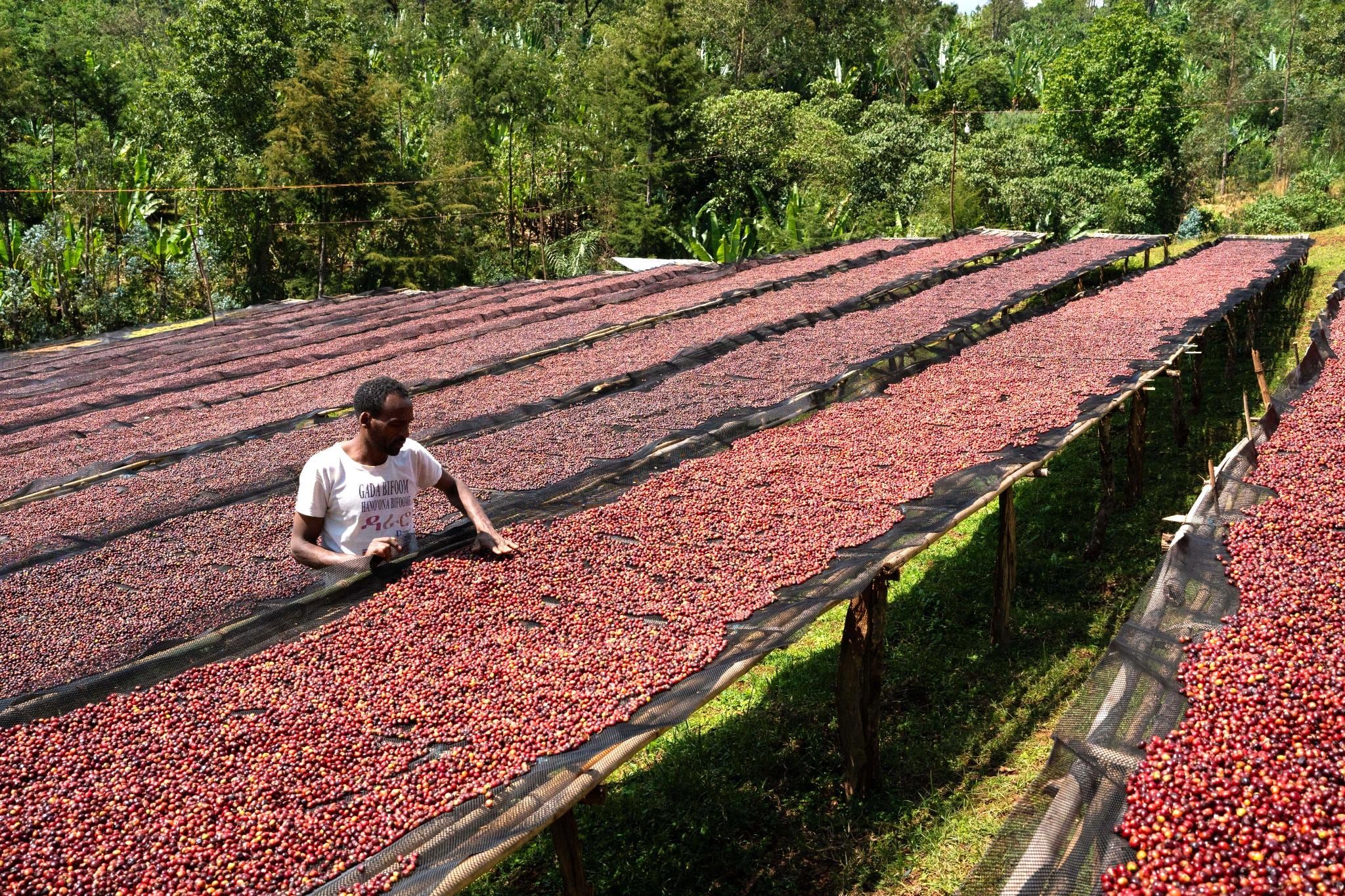 チェリーはアフリカンベッドの上で10〜14日間かけて天日乾燥されます。